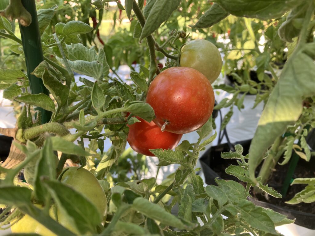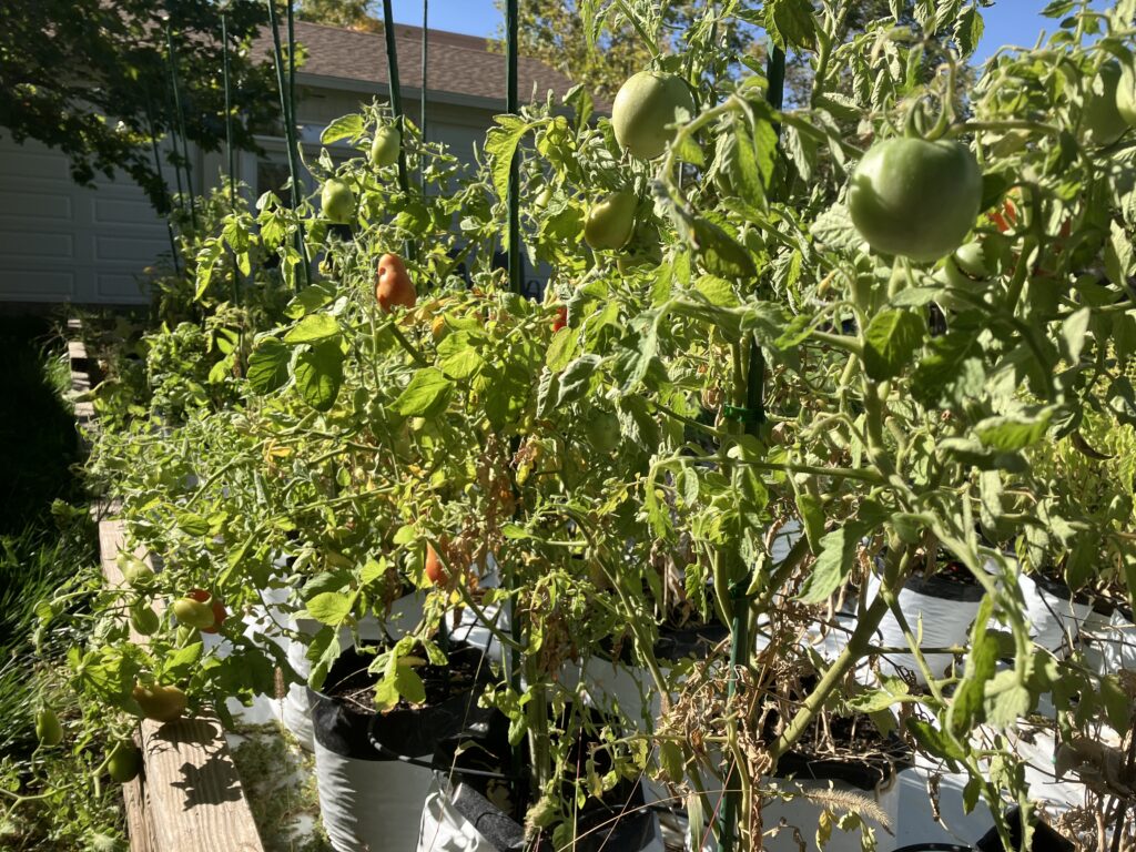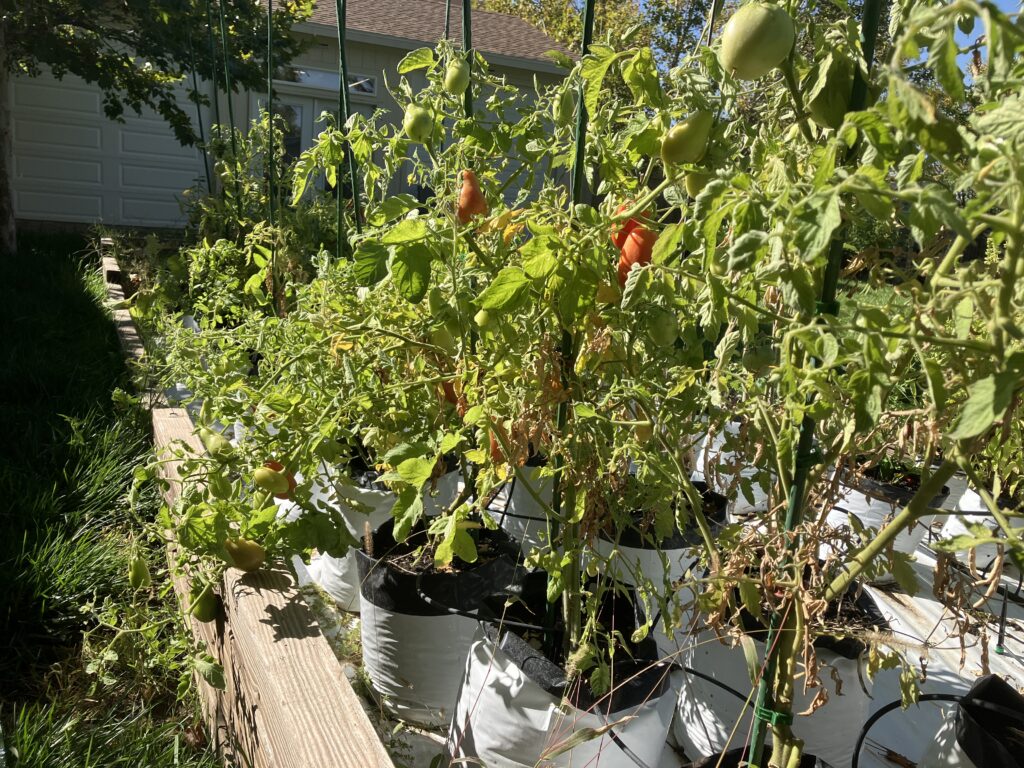 There are so many tomatoes on the vines they broke my trussing clips!